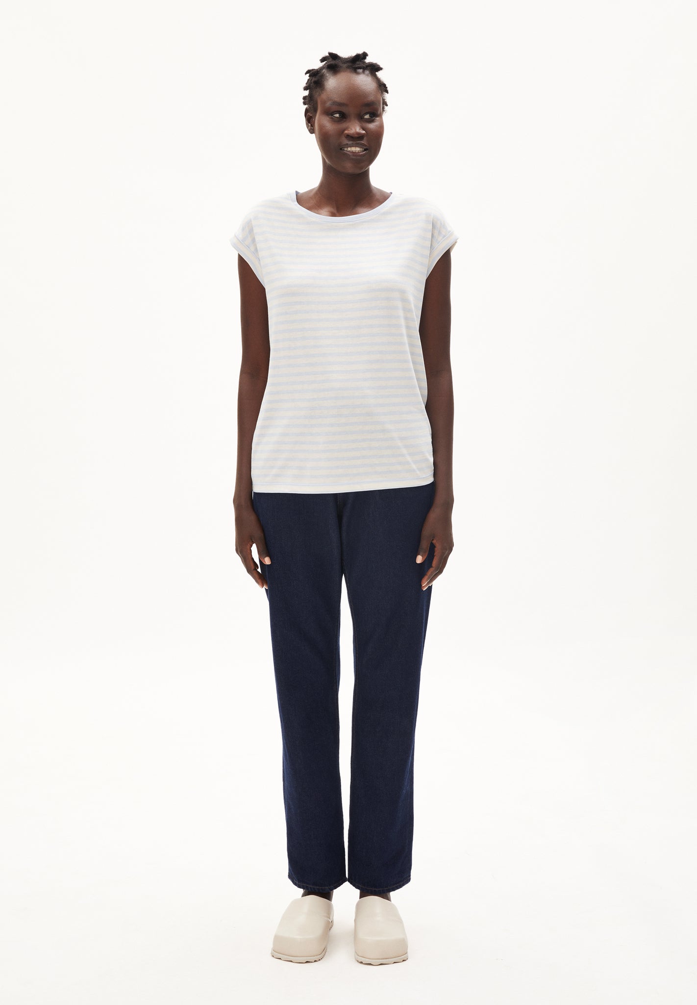 Leichtes , lockeres Streifen T- Shirt aus einem Mix aus Tencel Lyocell und Biobaumwolle.